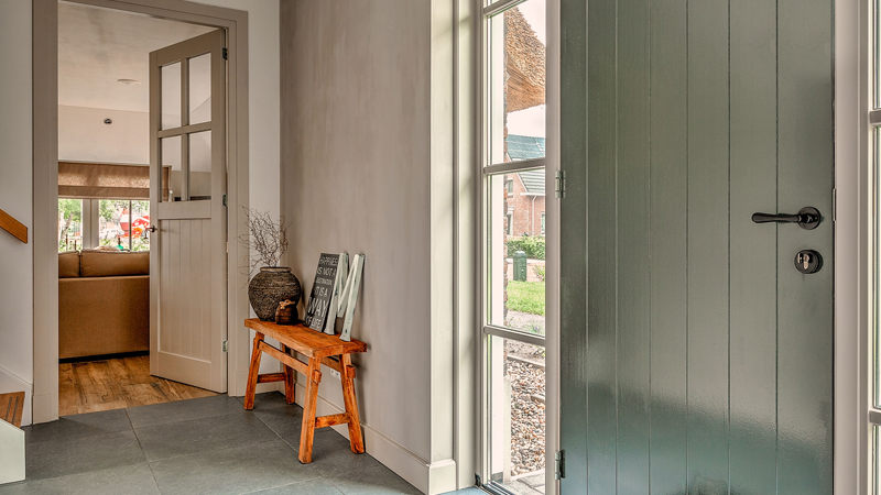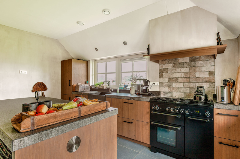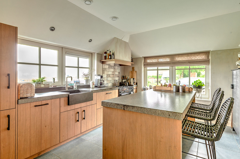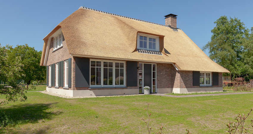 - Materialen: Alle materialen zijn vooraf door overleg tussen opdrachtgever en architect uitgezocht. Vervolgens hebben wij deze woning gebouwd bestaande uit kalkzandsteen lijmelementen, breedplaatvloeren en prefab kap en schoorsteen. Door de juiste materialen samenstelling heeft deze woning een prachtige uitstraling gekregen. Zo zijn er authentieke eiken gebinten en vloertegels toegepast, maar ook hele moderne raamdecoraties en interieur afwerkingen.
