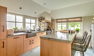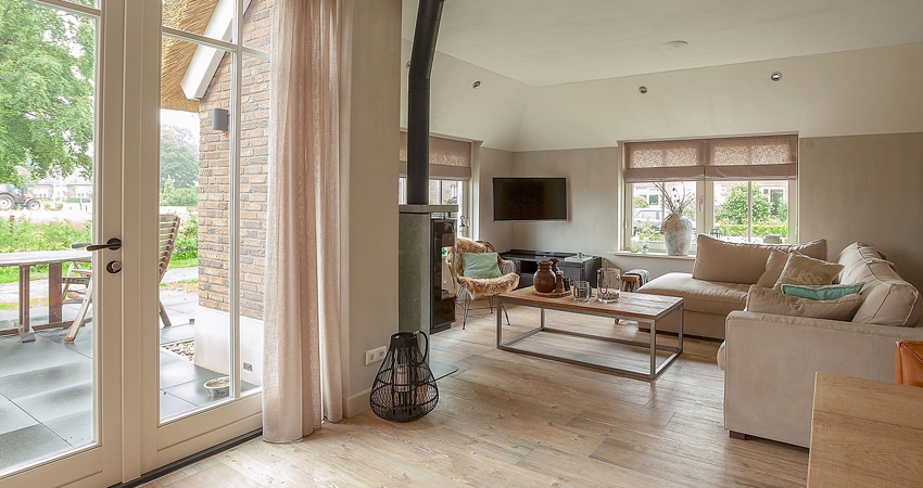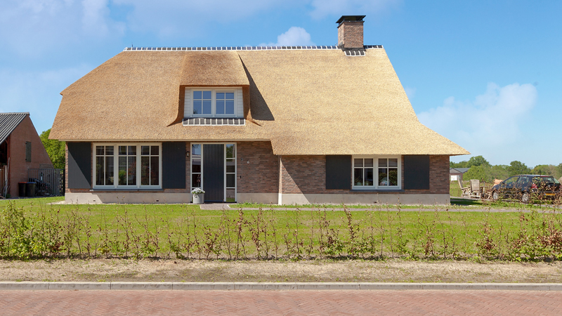 - Materialen: Alle materialen zijn vooraf door overleg tussen opdrachtgever en architect uitgezocht. Vervolgens hebben wij deze woning gebouwd bestaande uit kalkzandsteen lijmelementen, breedplaatvloeren en prefab kap en schoorsteen. Door de juiste materialen samenstelling heeft deze woning een prachtige uitstraling gekregen. Zo zijn er authentieke eiken gebinten en vloertegels toegepast, maar ook hele moderne raamdecoraties en interieur afwerkingen.
