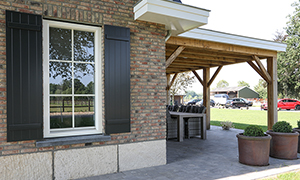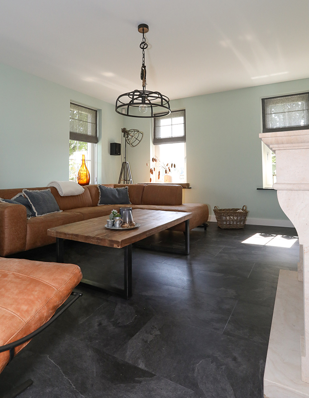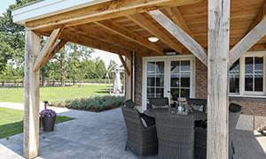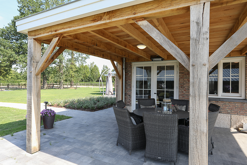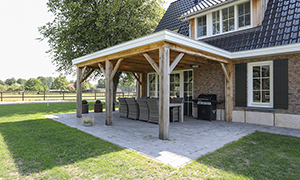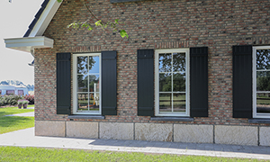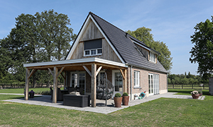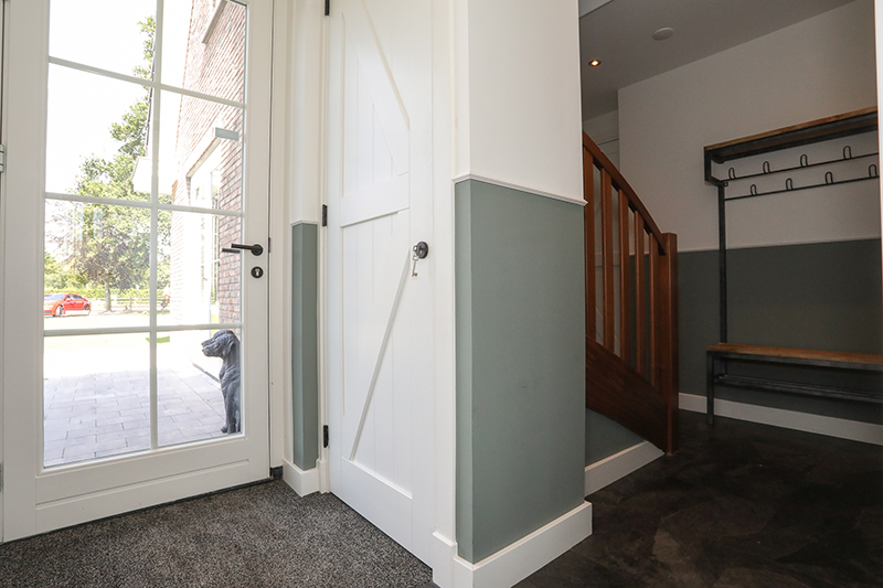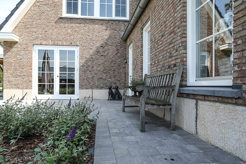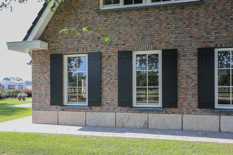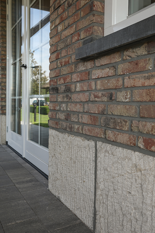 - Materialen: Het buitenblad staat op de karakteristieke Bentheimer zandsteen, daarop is een genuanceerde gevelsteen gemetseld in wildverband. De verdiepingsvloer bestaat uit een breedplaatvloer waarin alle leidingen t.b.v. de diverse installaties zijn weg gewerkt. Door de keramische dakpannen, onderhoudsvrije luiken, eiken topgevels en overkappingen word het een kwalitatief hoogstaande woning.